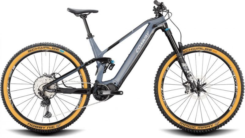 Rahmen: CONWAY Fully Intube EP8, Alu Rahmenmaterial: Aluminium Laufradgröße: 29″ Farbe: anthracite matt / silver Gabel: FOX « Performance 36 Float », 160 mm Dämpfer: FOX « Float X » 155 mm Federweg: 160 mm / 155 mm Bremsen: SHIMANO „Deore XT BR-M8120″, 4-Kolben Bremsscheiben: SHIMANO « RT-MT800 », 203 mm / SHIMANO « RT-EM800 », Magnet, 203 mm Bremshebel: SHIMANO « Deore XT BL-M8100 » Steuersatz: ZS44 / ZS56, Blocklock Vorbau: ERGOTEC « Bass 45 », 31,8 mm Lenker: ERGOTEC « Low Rizer », Ø 31,8, 780 mm Griffe: SQLAB « 70X » Sattel: FIZIK « Aidon » Sattelstütze: CONTEC « Drop – A – Gogo », 31,6 mm Kurbel: SHIMANO « Deore XT FC-M8150 », 165 mm / SHIMANO « SM-CRE80 12 B », 34 Z. Tretlager/Innenlager: Shimano Schaltwerk: SHIMANO « Deore XT RD-M8100 Shadow Plus », 12speed Schalthebel: SHIMANO « Deore XT SL-M8100 » Kassette: SHIMANO « CS-M7100 », 10-51 Z. Kette: SHIMANO « CN-M6100 » Reifen vorne: SCHWALBE « Magic Mary », Soft, 60-622 Reifen hinten: SCHWALBE « Hans Dampf », Soft, 60-622 Nabe Vorderrad: DT SWISS „Spline H1900″, 15 x 110 mm Nabe Hinterrad: DT SWISS „Spline H1900″, 12 x 148 mm Speichen: DT Swiss Felgen: DT SWISS „Spline H1900″ Display: SHIMANO, « SC-EM800 » 3-Stufen, Remote Control, Schiebehilfe Akku: Darfon « Intube 720 », Lithium-Ionen mit BMS, 720 Wh Ladegerät: Darfon 4-5,6 Ah Motor: SHIMANO Mittelmotor « EP800 », 250 W Nenn-Dauerleistung Pedale: nicht im Lieferumfang enthalten Zulässiges Gesamtgewicht: 130 kg (Körpergewicht + Fahrrad + Ausrüstung) Gewicht Komplettrad: 24,9 kg