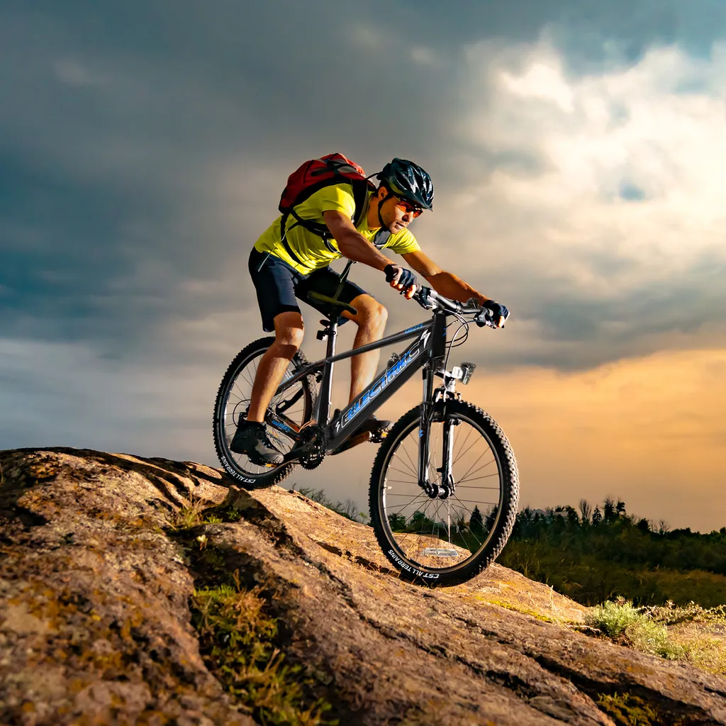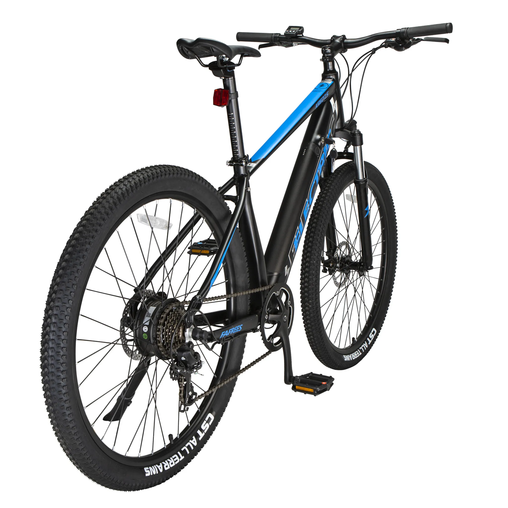 Das Fahrrad ist mit 27,5-Zoll-Scheibenreifen vorne und hinten und abschließbaren Y-Bremsen für die Vorderradgabel ausgestattet, was es perfekt für verschiedene Gelände macht. Es unterstützt Fahrer bis zu 120 kg. Der 36-V-10-Ah-Ionenbatterie-Lithium-Motor mit 250 Watt läuft 40 -50 km bei voller Ladung (das sind 5-6 Stunden) Mit einer Digitalanzeige am Lenker können Sie Ihren Fortschritt auf dem Laufenden halten. Das Fahrrad ist die Akkulaufzeit und mehr